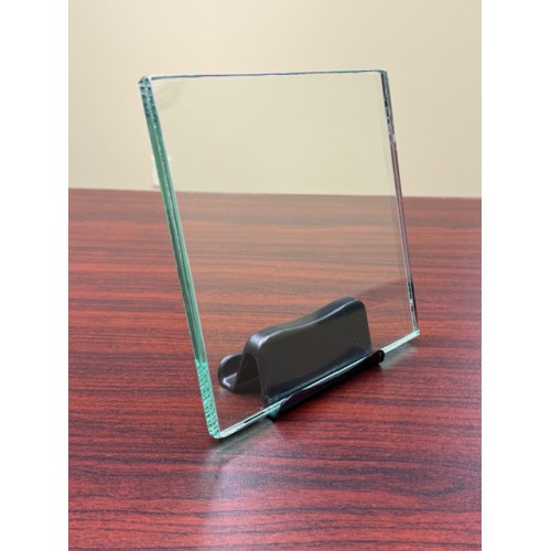 This laminated piece of glass allows you to demonstrate the performance, appearance, and construction of laminated glass that is commonly used in hurricane windows. The glass is comprised of two pieces of 3/16" glass with a 0.090" PVB laminate in between. The resulting dimensions are 7 x 7 x 0.45 inches. There are no coatings on the glass. This glass sample is supplied without the protective white vinyl wrap on the perimeter, so the customer can see the cross section of the laminated glass.